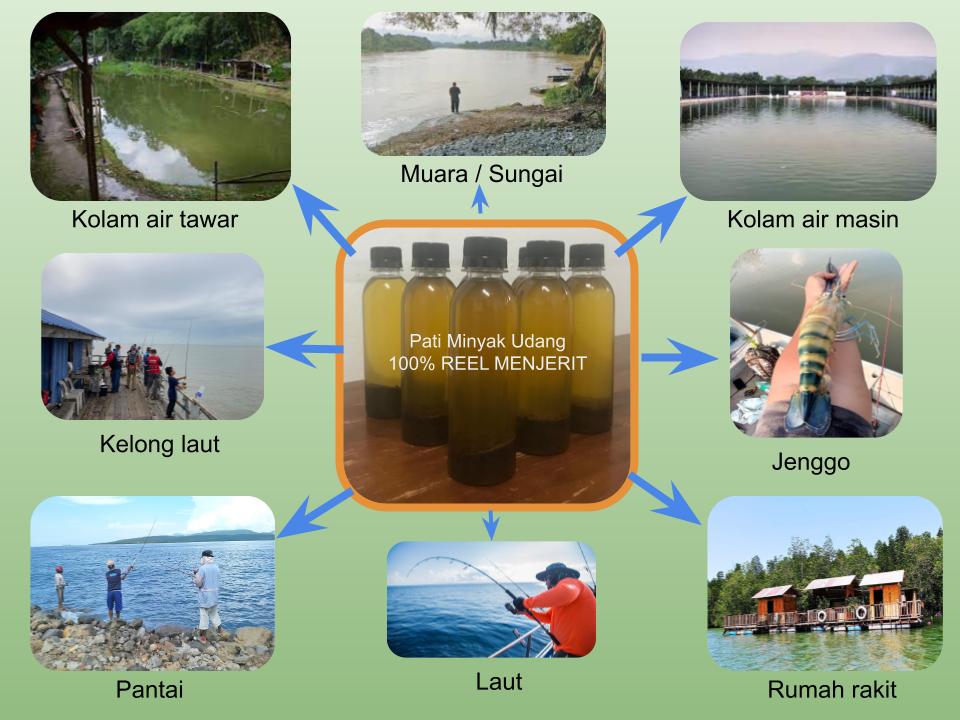 Pati minyak ini boleh diguna pakai disemua tempat termasuk kolam air masin, kolam air tawar, laut dalam, sungai, pantai, muara, kelong, rumah rakit, dan pelbagai.